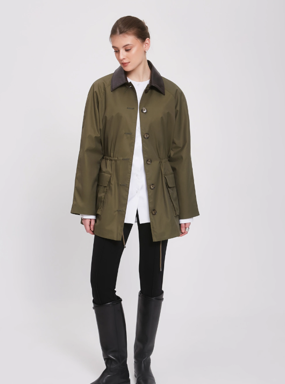 Парка сшита из хлопка с пропиткой, состав 73% хлопок. 27% полиамид, плотность 155 гр/м².